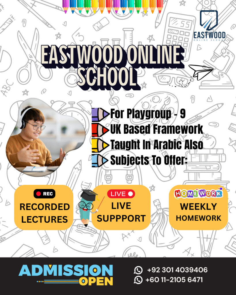 Eastwood Online School brings world-class learning straight to your home, making homeschooling simple, engaging, and effective. Our expertly crafted curriculum, live interactive classes, and qualified teachers ensure every child receives personalized attention and guidance. With fun, hands-on lessons, regular assessments, and mid-term evaluations, we keep students motivated and on track. Parents enjoy the freedom of flexible schedules, while children explore a rich mix of academics, creativity, and life skills. Whether you’re starting homeschooling or upgrading your child’s education, Eastwood offers affordable, globally accessible programs that inspire success, confidence, and a lifelong love for learning—anytime, anywhere.